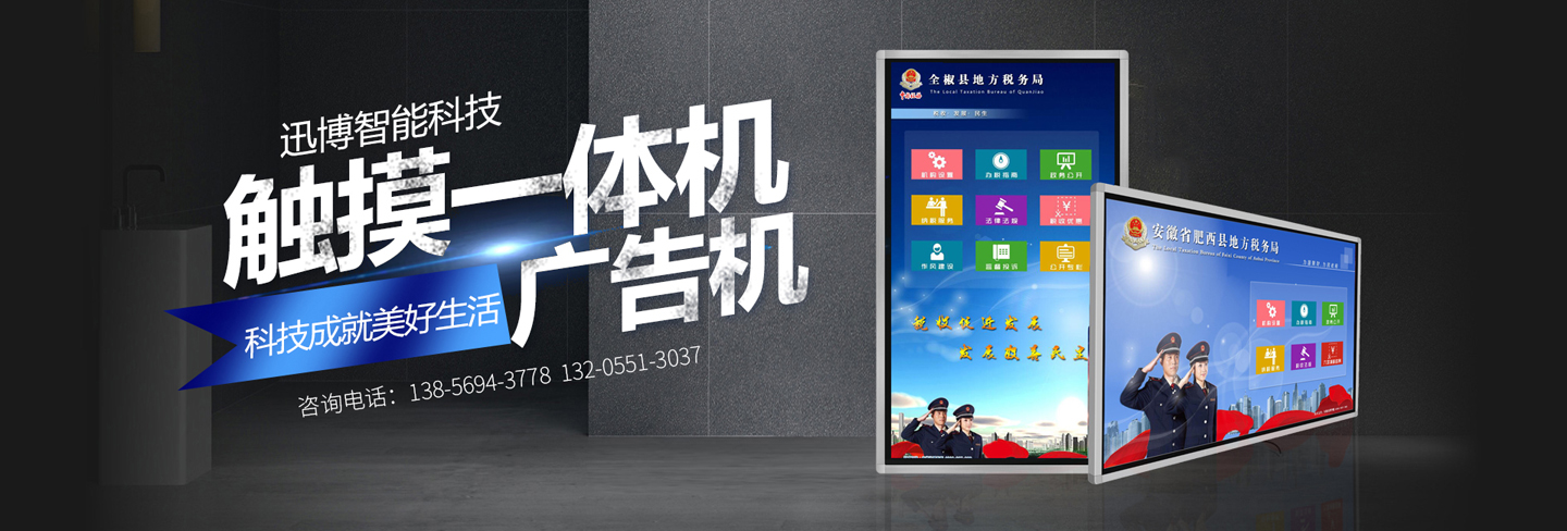 迅博智能 位于中國科教城---合肥市,和經濟開發區與高新區毗鄰,地址合肥市肥西縣湯口路與皋城路交口人民萬福產業園一期12棟東側,是一家IT領域的高新技術企業,全心全意服務于信息化建設,做專業的信息化提供商,全力打造信息時代新模式。 迅博智能 主要從事觸摸屏、觸摸顯示器、OLED柔性觸摸屏、觸摸查詢一體機系列產品及觸摸顯示互動體驗軟硬件產品;智能排隊叫號、網上預約排隊叫號、安康碼皖事通取號系統;曲面屏、OLED 屏幕、柔性屏、LCD液晶大屏拼接系統;落地式、壁掛式單機版網絡版室內外廣告機及數字標牌廣告信息發布系統;室內外LED電子格柵透明屏、單雙色、全彩電子大屏;各類辦事營業廳:公積金...